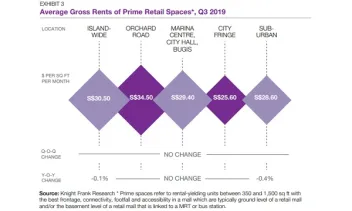 Orchard Road rents remained unchanged on the back of limited supply, which offset lower tourist spending.