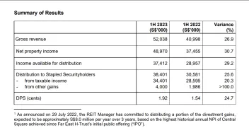 OUE C-REIT’s distributable income drops 3.3% YoY to $57.6m in 1H23