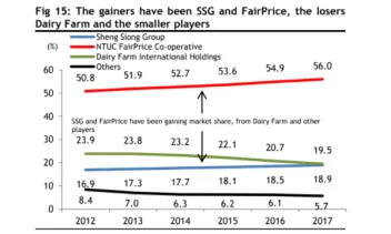 Within five years, Sheng Siong took up 18.9% whilst FairPrice ate up 56% of the market.